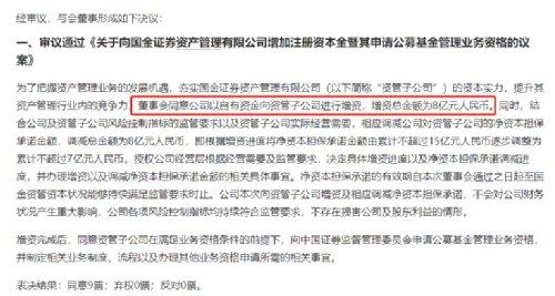 国金证券表示,为了把握资产管理业务的发展机遇,夯实国金证券资产管理有限公司(以下简称“国金资管”)的资本实力,提升其资产管理行业内的竞争力,董事会同意公司以自有资金向资管子公司进行增资,增资总金额为8亿元人民币。