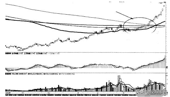 第二、牛熊线上拐,说明多头不断进场吸筹,股价的趋势很有可能发生逆转。