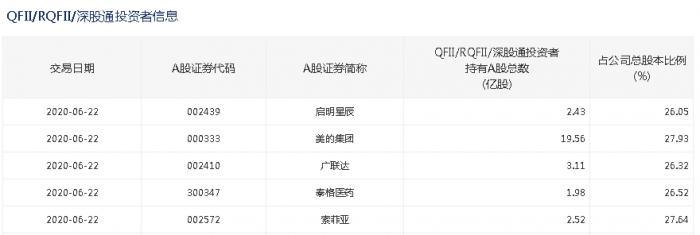 截至6月23日,QFII、RQFII、深股通等境外投资者持有美的集团合计19.56亿股,占总股本的27.93%。