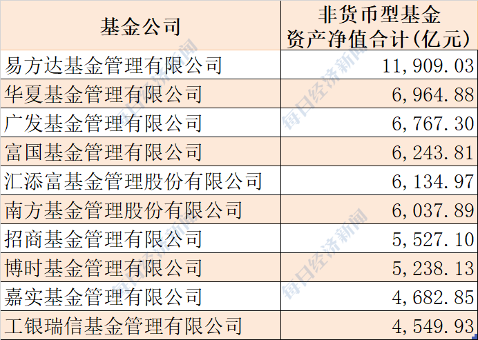 易方达、华夏、广发非货基规模位居前三
