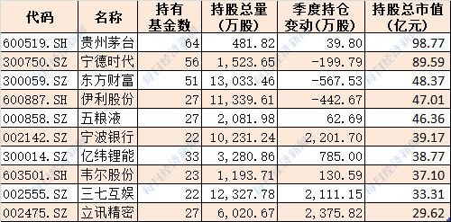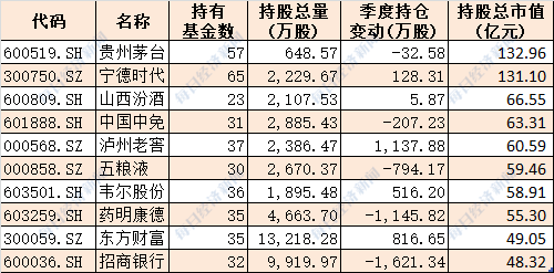 十大基金公司最新重仓股