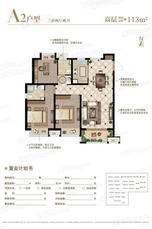 以下就是本套无锡公园悦府小区113平米三居室房子的户型图。
