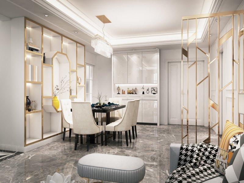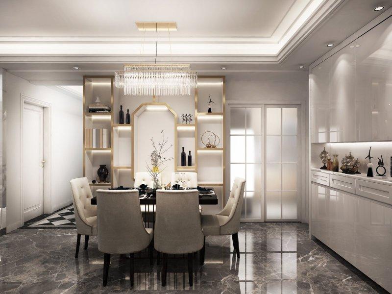 尺度阔绰的客餐厅,地面甄选大面积意大利灰石材,法式简约韵味无限弥漫。