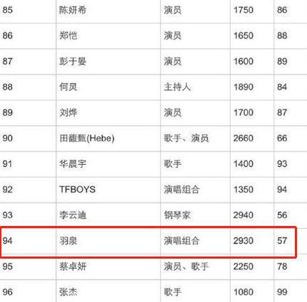 早在2015年,羽泉组合就已登上福布斯中国名人榜,虽然排名不靠前,但上榜歌手寥寥无几,足以证明他们的实力不容小觑。
