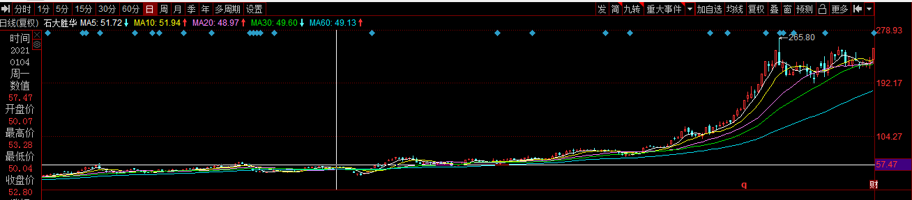 石大胜华从年初的50.04元最高涨到了348.88元,涨幅高达597%,涨了近6倍