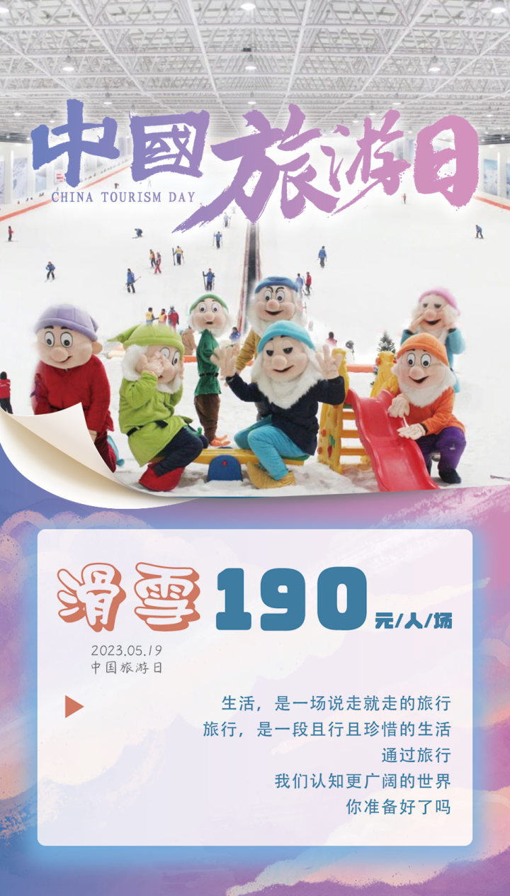 游客在官方微信平台购票,可享受滑雪门票5折优惠190元/人/场(门市价380元/人/场)。