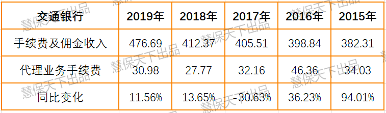交通银行也没有公布代销保险具体情况,但其代理业务手续费已经连续两年保持两位数正增长,表现稳健,其中2019年达到11.56%。具体到每年来看: