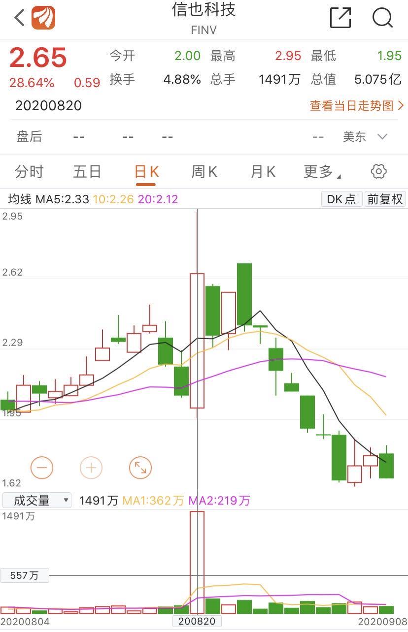 但此后,互金概念股龙头股股价均呈现走低趋势。截至美东时间9月8日收盘,信也科技集团1.66美元,较8月20日收盘价下降37.36%;宜人金科股价2.85美元,下降21.92%;360数科股价11.49美元,下降16.5%,乐信股价7.28美元,降低16.32%;趣店股价1.46美元,下降12.57%;嘉银金科股价2.66美元,下降5%。