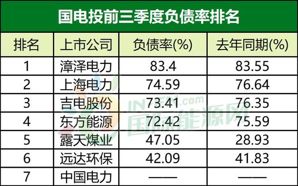 从几家上市公司的资产负债率和总负债情况看,前四家公司负债压力较大已经是不争的事实。6家上市公司中超过一半的公司资产负债率突破7成, 漳泽电力、上海电力、吉电股份、东方能源这几家公司的资产负债率分别为83.4%、74.59%、73.41%和72.42%,尽管较去年同期略有下降,但整体依然属于高负债水平。