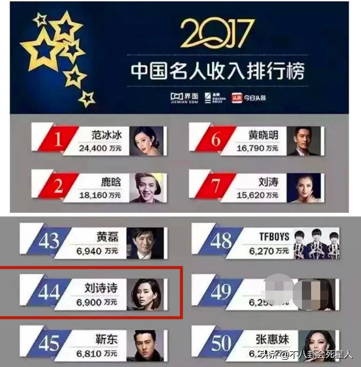 虽然没有吴奇隆财大气粗,但刘诗诗也是小有资产的女明星。作为当红的85花,从2012年开始,刘诗诗就多次进入“中国福布斯名人榜”,2017年的收入高达6900万,这已经是普通人望尘莫及的数字了。