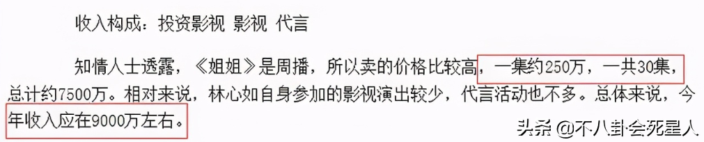 她自己投资主演拍一部戏,林心如轻松收入7500万,难怪她自己都说,做老板娘很不错,以后要继续拍戏。