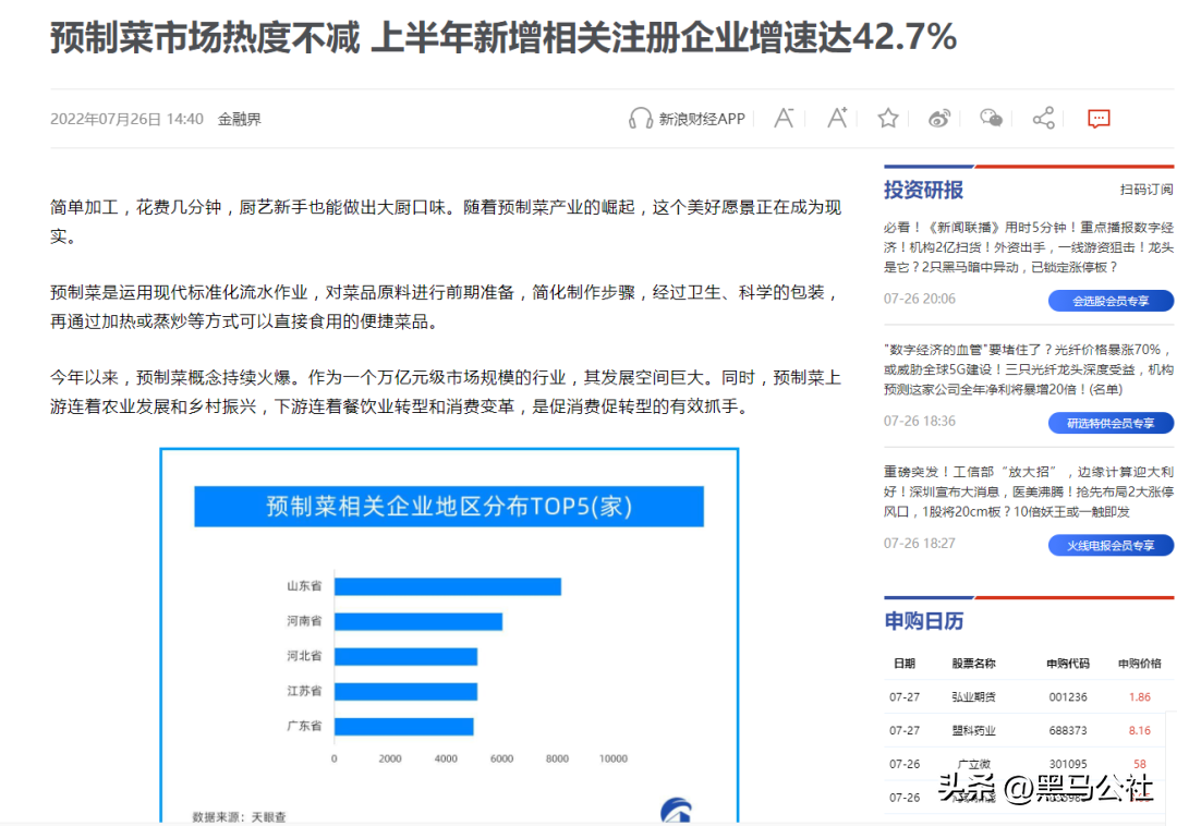 根据天眼查数据显示,截至目前,预制菜相关企业6.6万余家,其中,2022年新增注册企业1020余家,1~6月新增企业注册增速达42.7%。