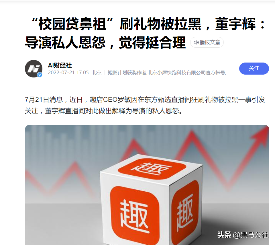 贾乃亮事前是不是真的不知道趣店品牌的前身,黑马没法验证,但趣店的过往,网友和互联网都是有记忆的。
