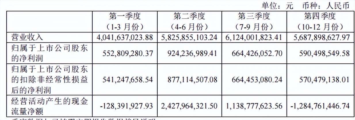 八、2021 年分季度主要财务数据