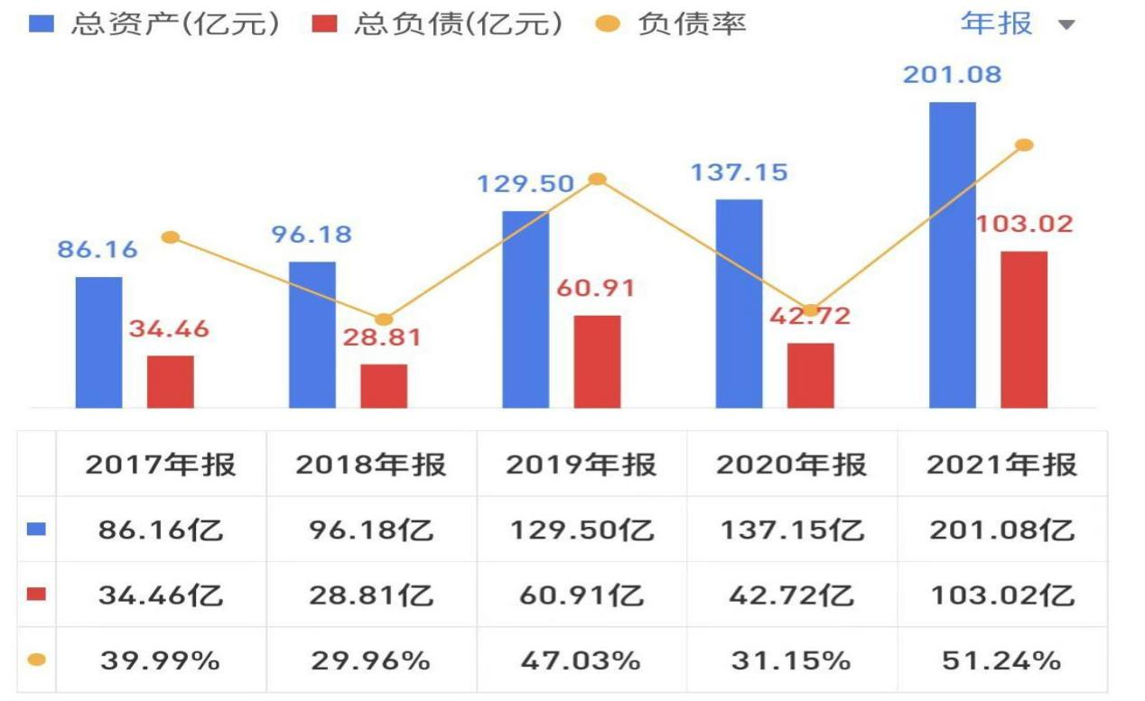 企业的总资产由137亿增至201亿,增量为64亿;所有者权益由94亿增至98亿,增量为4亿;负债由42亿增至为103亿,增加了61亿。总资产的增加基本都是增加的负债,质量不高。
