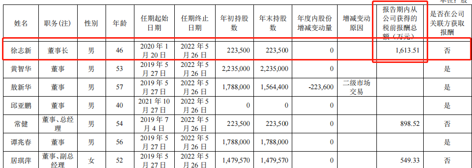 董事长居然有1613万工资,总经理为898万工资,副总经理为549万工资。