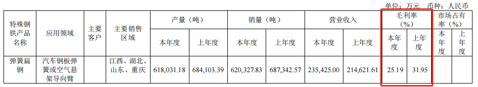 是公司的战略产品,产品销往全国各地,公司通过持续多年的耕耘,多年来在汽车弹簧用钢细分市场一直保持较高的占有率,具有稳定的合作关系和较强的议价能力,是公司的高效益产品之一;目前已覆盖轻微簧、中重簧、客车簧等全系列产品,