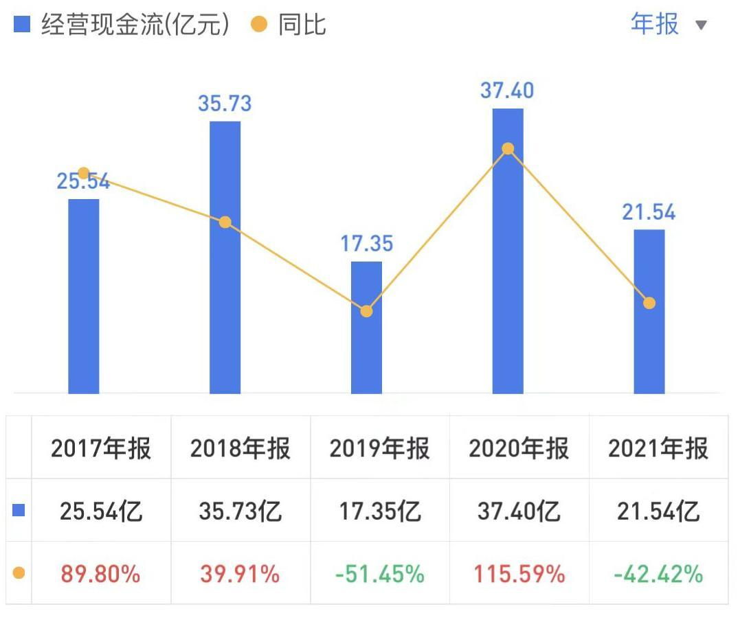 净现金流量为21.54亿, 销售商品、提供劳务收到的现金为165亿,营收为216亿,增值税所约为13%,所以应该收到现金为244亿左右,实际回收占67%。