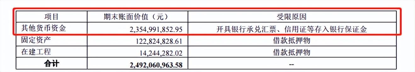 23亿的货币资产受限。
