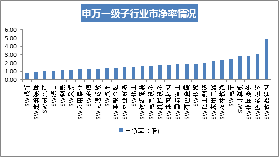 从申万28个一级子行业市盈率情况来看,银行以0.81倍的市净率排在所有行业前列,且处于历史低位。