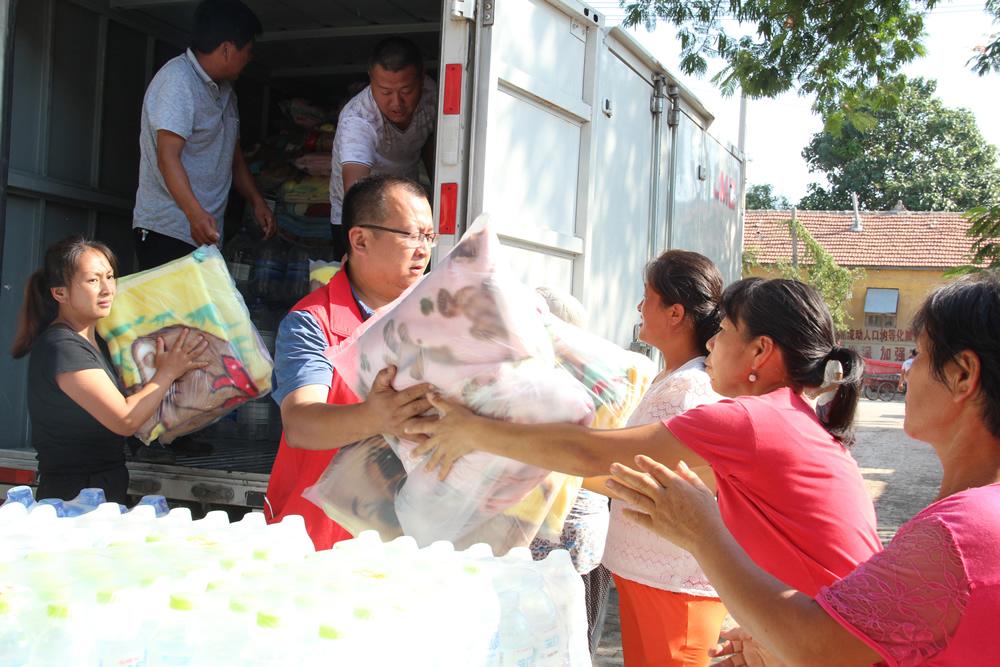 8月25日,由潍坊报业集团、潍坊慧能文化发展有限公司等单位主办的“新时代·中国风”2018当代中青年中国画家学术提名展在郭味蕖美术馆开展。参展的10位艺术家得知我市寿光在此次台风“温比亚”中受灾严重,遂捐赠了500多条毛毯及4.5升大桶水1800余桶。26日下午,饱含艺术家暖暖爱心的救灾物资已经送到了受灾的寿光市稻田镇西里村村民手中。