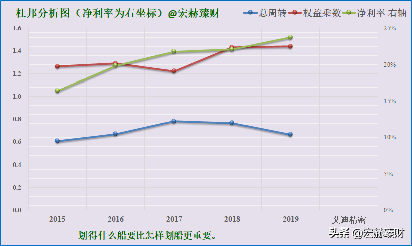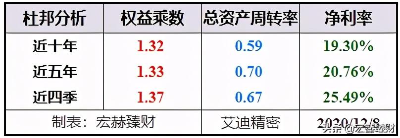 宏赫臻财建议关注未来杜邦指标趋势呈现:【低杠杆或适度杠杆(1.2-3)+周转率接近或大于1且有向上趋势+稳健增长的中高净利率>15%】
