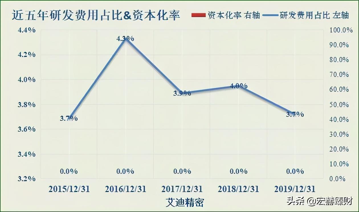 艾迪精密投入研发占营收比在3-5%一线,且全部费用化。