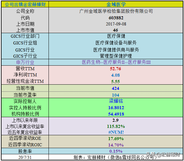 金域医学高ROE,其余盈利指标仍处于良好线下方。