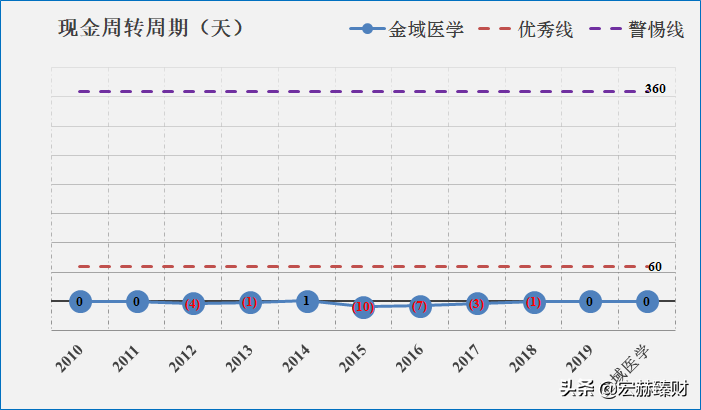 现金循环周期又可称为净营业周期,是考量企业日常运营环节的现金流状况,优先关注那些该指标小于60的企业,负数更为优,表示企业的还款周期远大于存货变现期。警惕该指标大于360的企业。