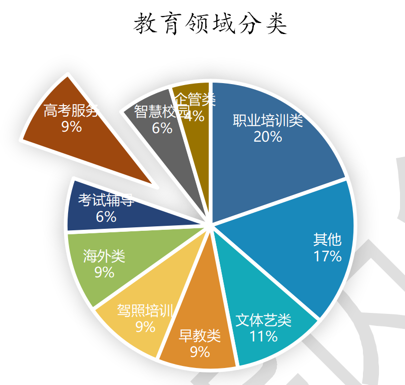 根据我方大数据提出的主营业务关键词,将72家教育企业进行分类如下: