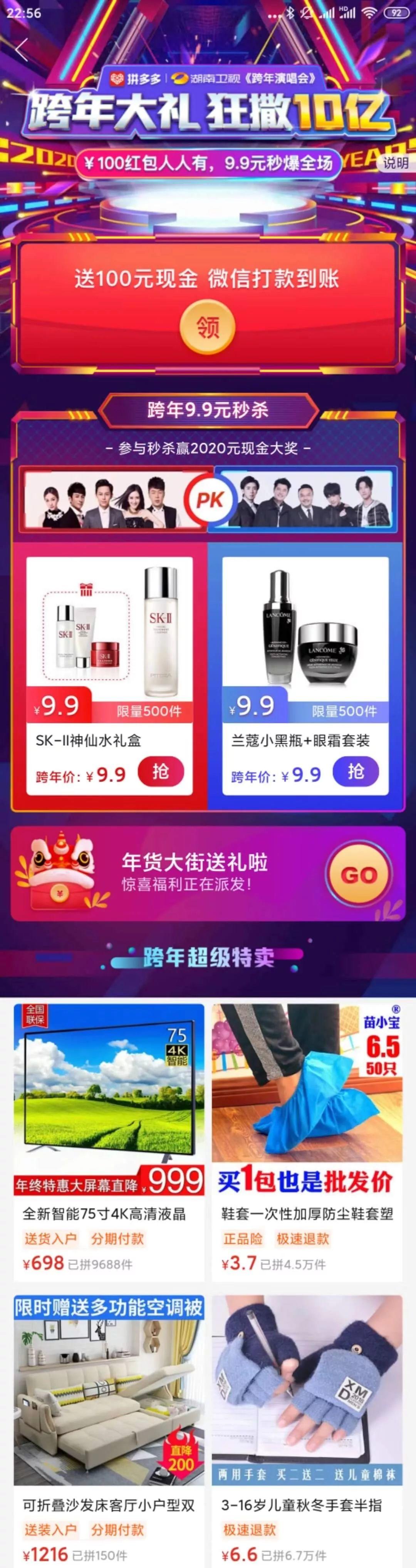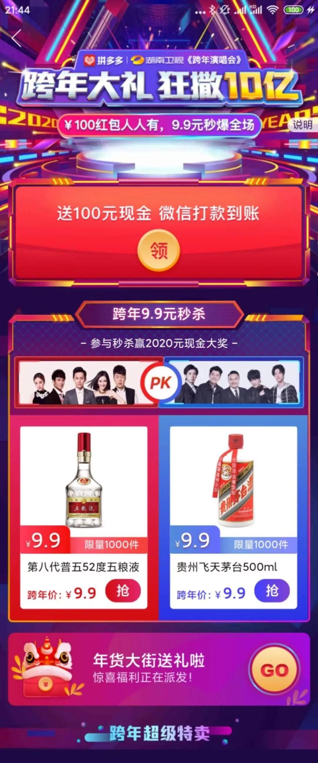 但是苦于没有寻到合适的机会,因此一直没能亲自对拼多多的活动作一番详细拆解。不过,就在2019年的最后一天晚上,在各大平台纷纷播放跨年晚会的时候,拼多多低调上线了一个跨年活动。