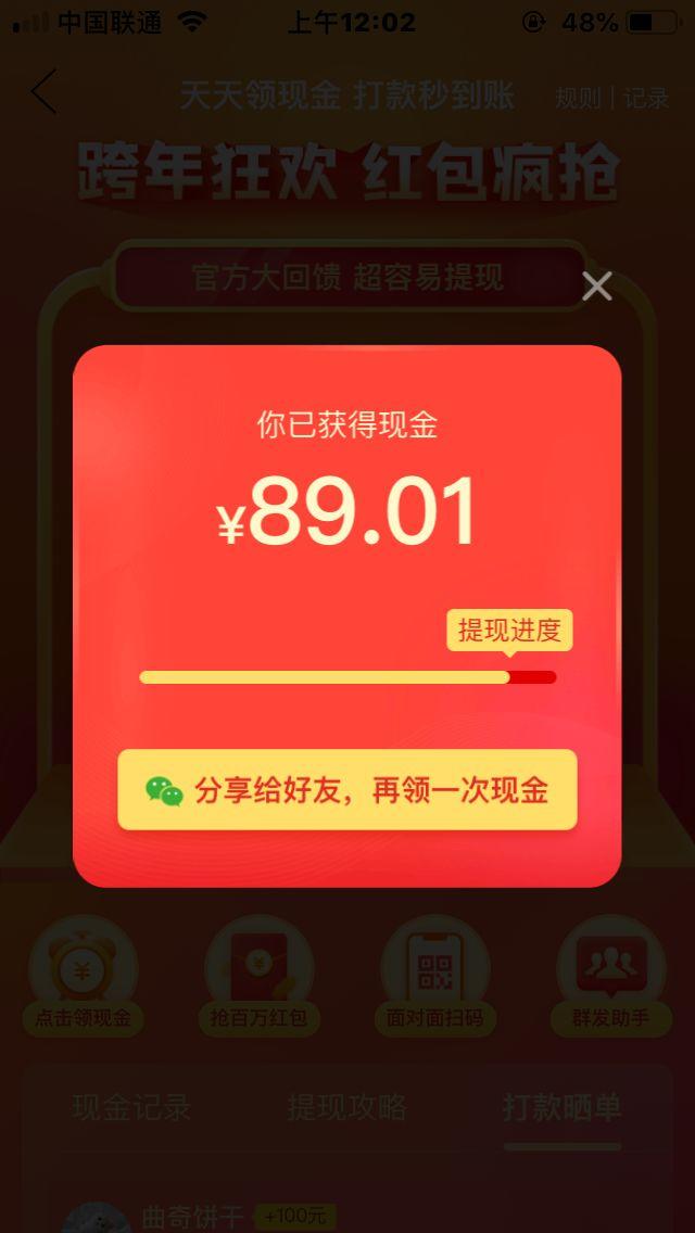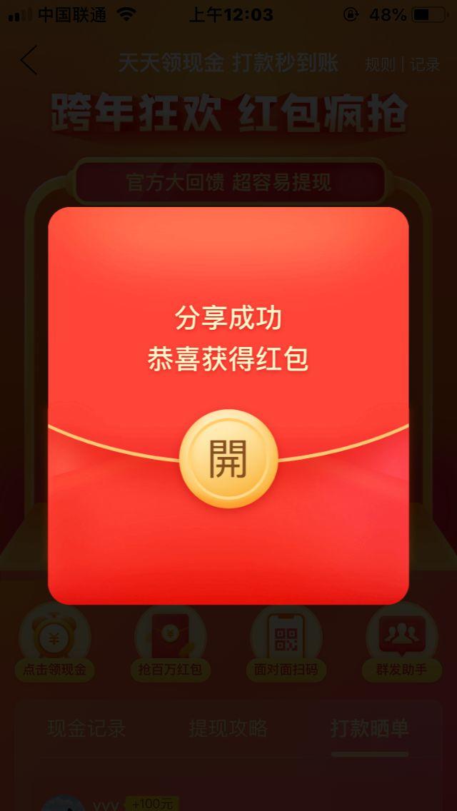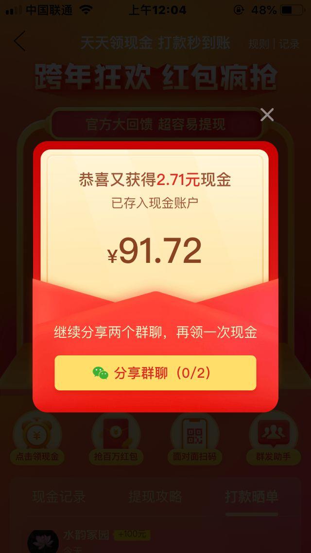 紧接着,当用户打开红包,就会接收到获得2.71元现金的弹窗提醒。