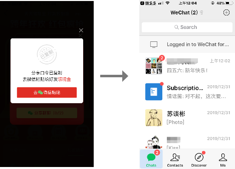 回到正文,当用户再次点击分享按钮后,才会进入常规的微信分享链路,即,引导用户复制口令,分享微信好友。