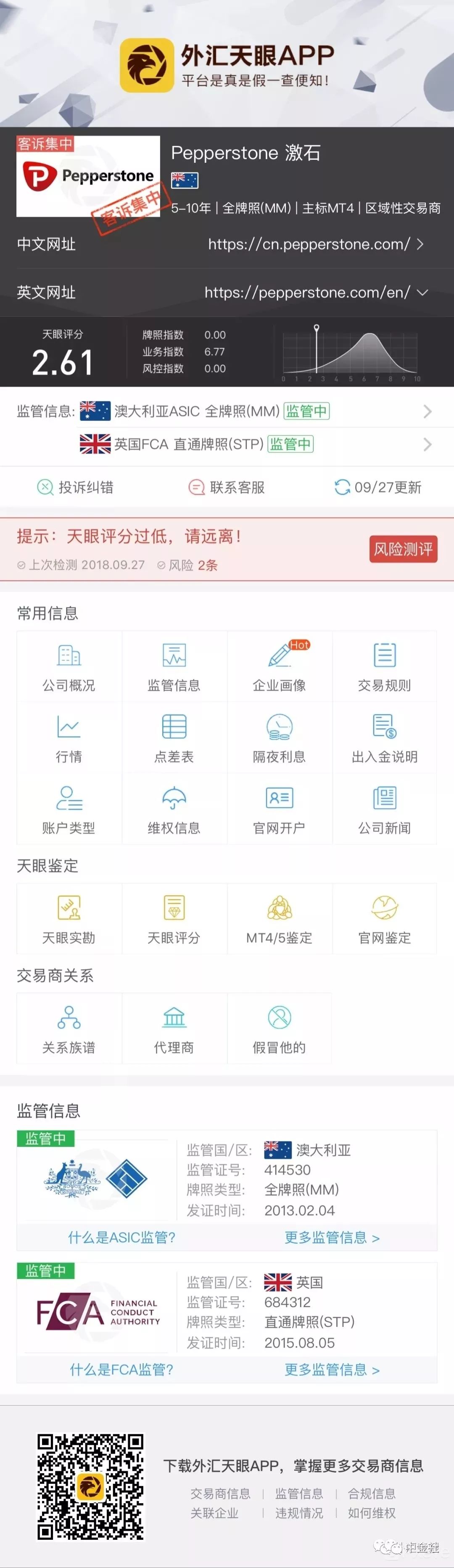 外汇天眼,提醒广大投资者,PTFX · 普顿虽访问量较大,但该平台无有效监管,属不法黑平台。而Pepperstone · 激石近期客诉集中,且存在私自封停账户、拒绝出金、严重滑点卡盘等问题。外汇天眼提醒广大投资者,注意规避风险,远离低分平台,以免受到不必要的财产损失。
