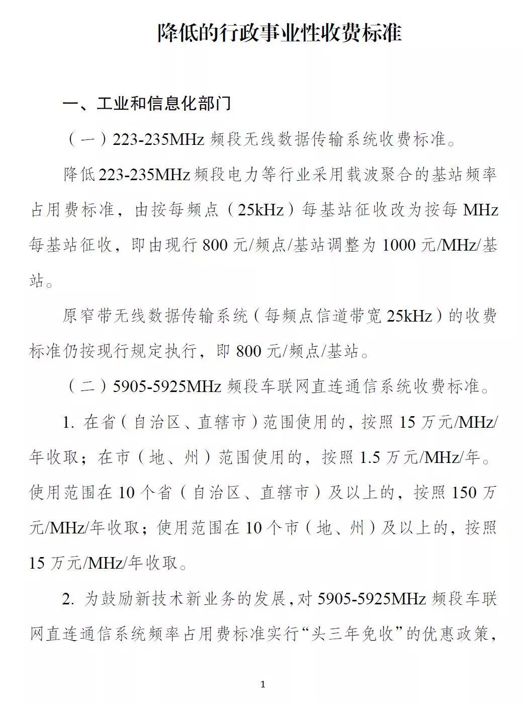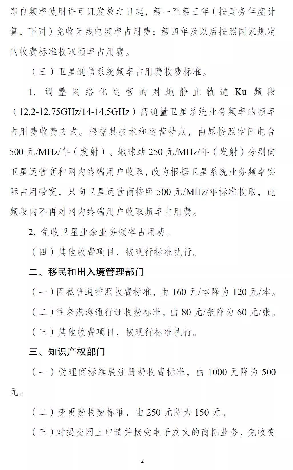 日前,国家发改委、财政部对外发布通知,为进一步加大降费力度,切实减轻社会负担,自2019年7月1日起,降低无线电频率占用费、出入境证照类收费、商标注册收费等部分行政事业性收费标准。