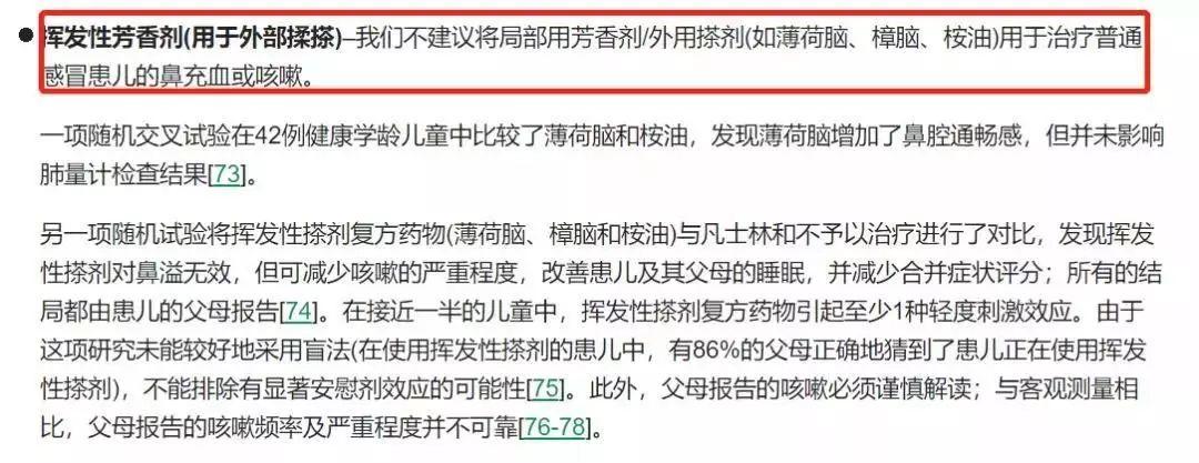 除了图片中所提及的不推荐原因外,还有一种原因是因为薄荷脑产品对神经系统有抑制作用,2岁以下婴幼儿的严重不良反应报告较多,除了风油精,其他含有薄荷脑的复方炉甘石洗剂、清凉油、无比滴等也应当避免使用。