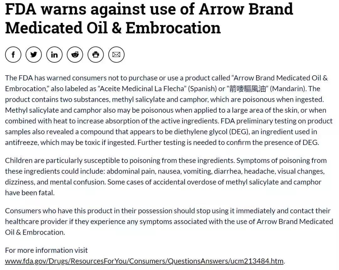 大家都知道风油精外涂,根据说明书介绍,风油精还可以口服。不过风油精中的水杨酸甲酯口服急性毒性高,150mg/kg水杨酸盐的量就会引发中毒。