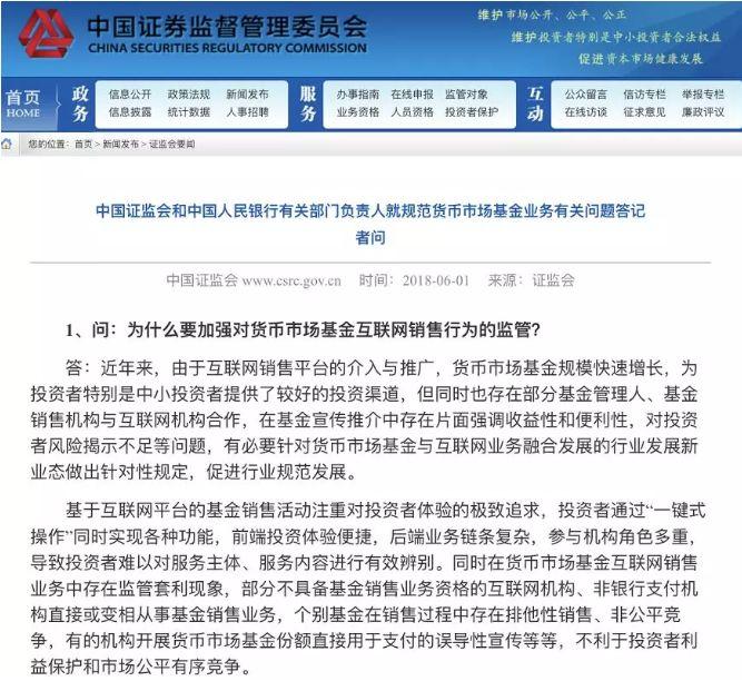 原来在6月1日,央行和证监会联合发布《关于进一步规范货币市场基金互联网销售、赎回相关服务的指导意见》,