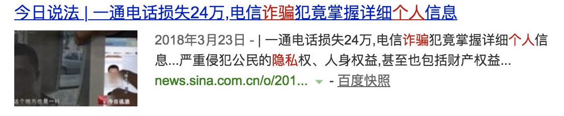 直到今天,在谷歌和百度,通过某些特定关键词仍然能找到很多提供隐私信息查询服务的网站和组织。