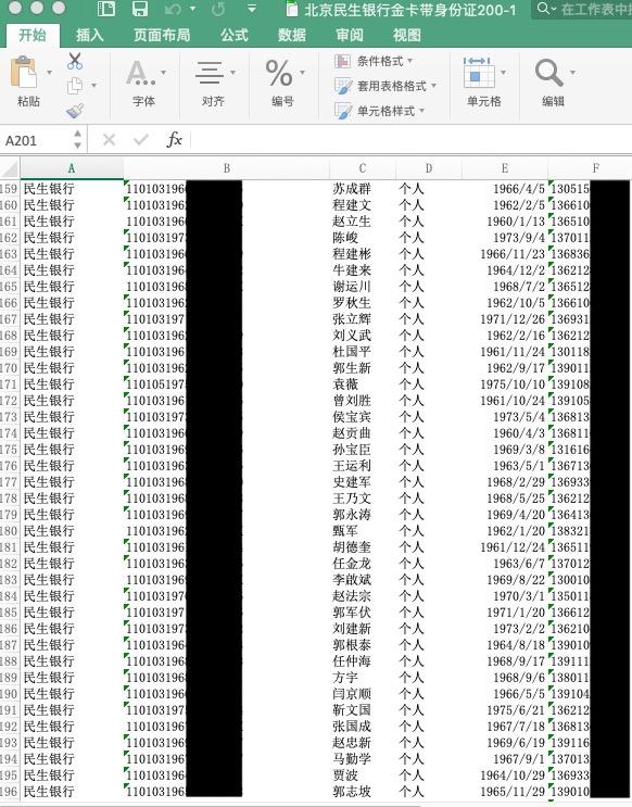 北京民生银行金卡用户信息