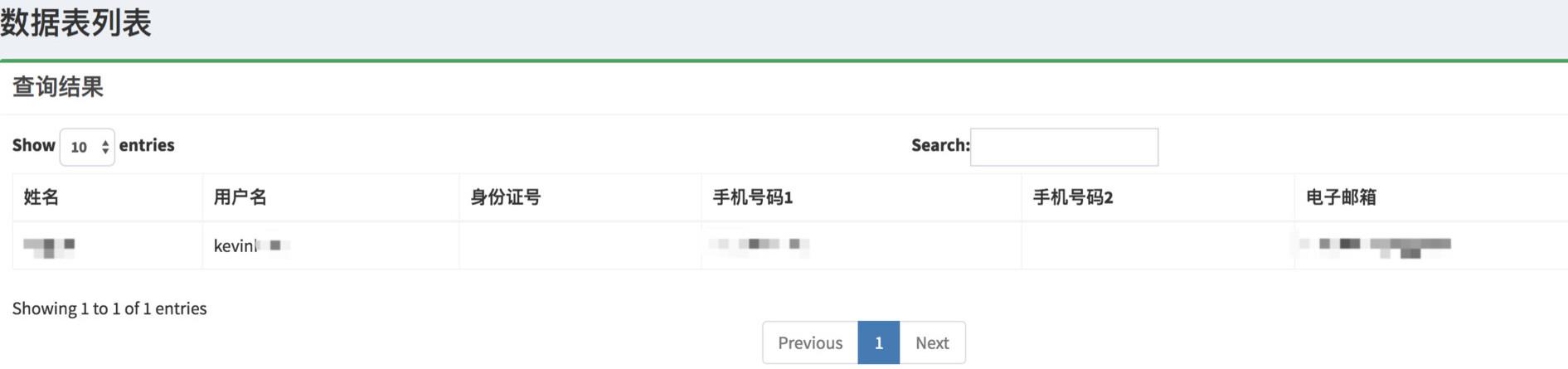 在“某商城数据库”页面,我随便输入自己曾经用过的一个网站用户名,结果非常惊悚地发现,这个网站搜索出了我真实的姓名、邮箱和电话数据: