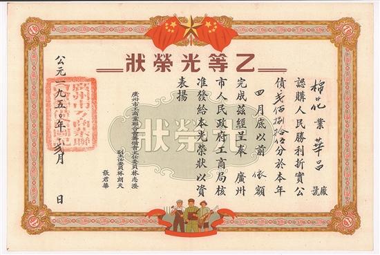 公债发行额度按各大区分配。广州是中南地区最踊跃支持国家公债的城市之一。这一光荣状折射出岭南工商业界群众踊跃认购的热情,更体现出岭南群众对新中国政权的积极支持和高度信任。