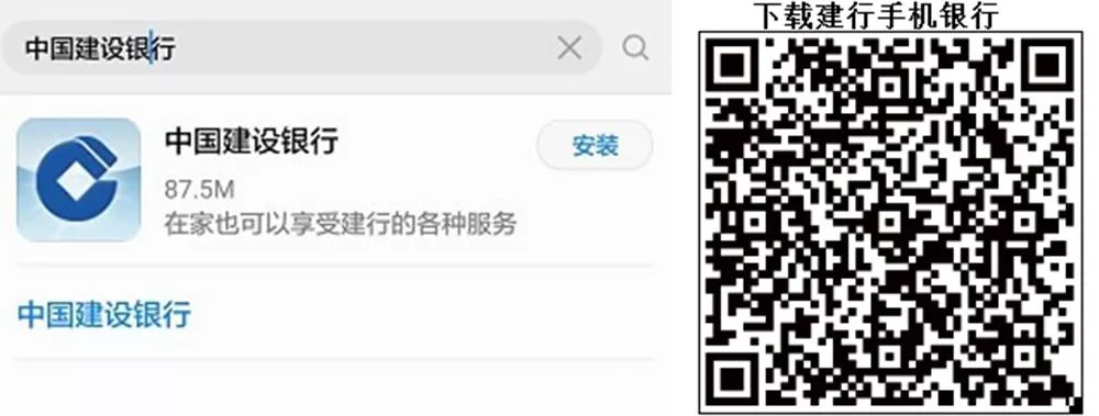 扫描二维码或者在手机的应用市场里搜索中国建设银行,然后点击下载安装。