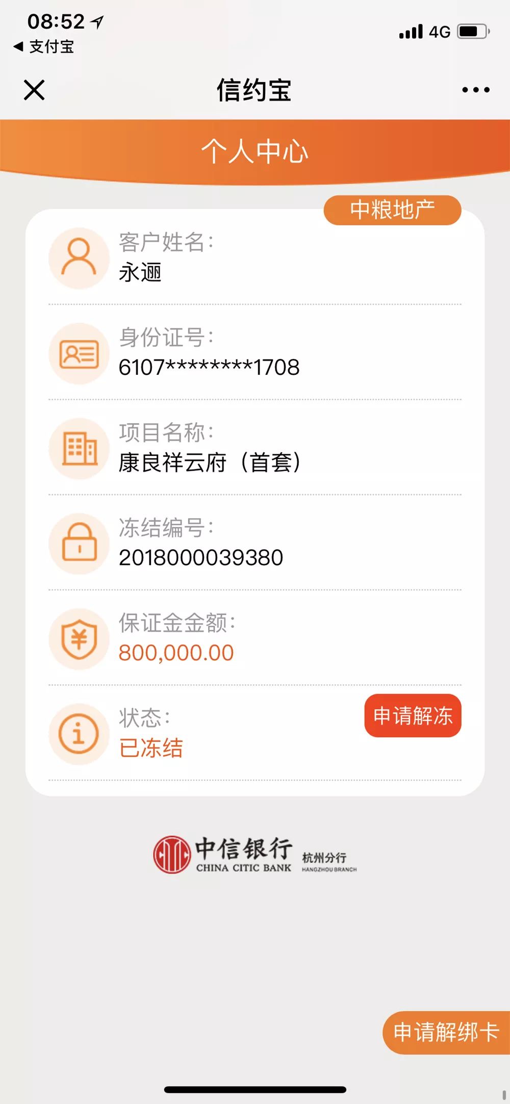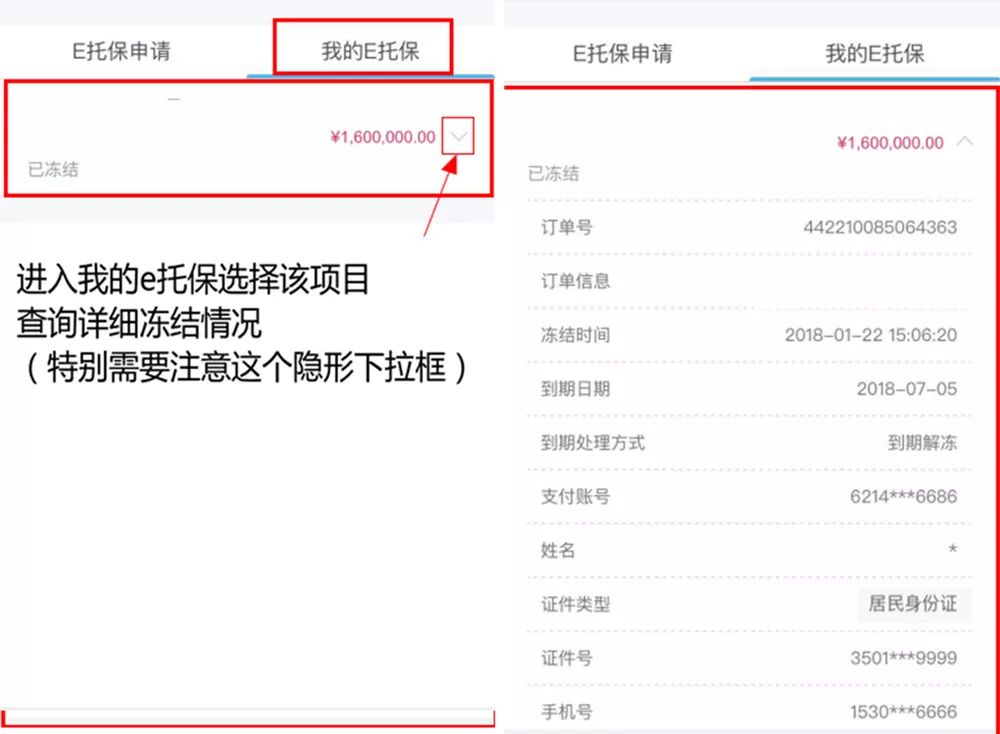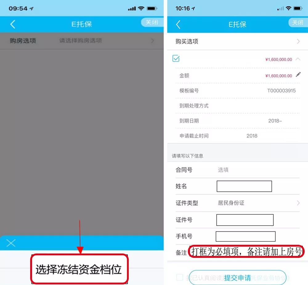 资金冻结后,进入“我的E托保”,(要求有姓名、证件号码、金额、房号等信息)作为您冻结资金的上传材料,其他截屏无效!!!