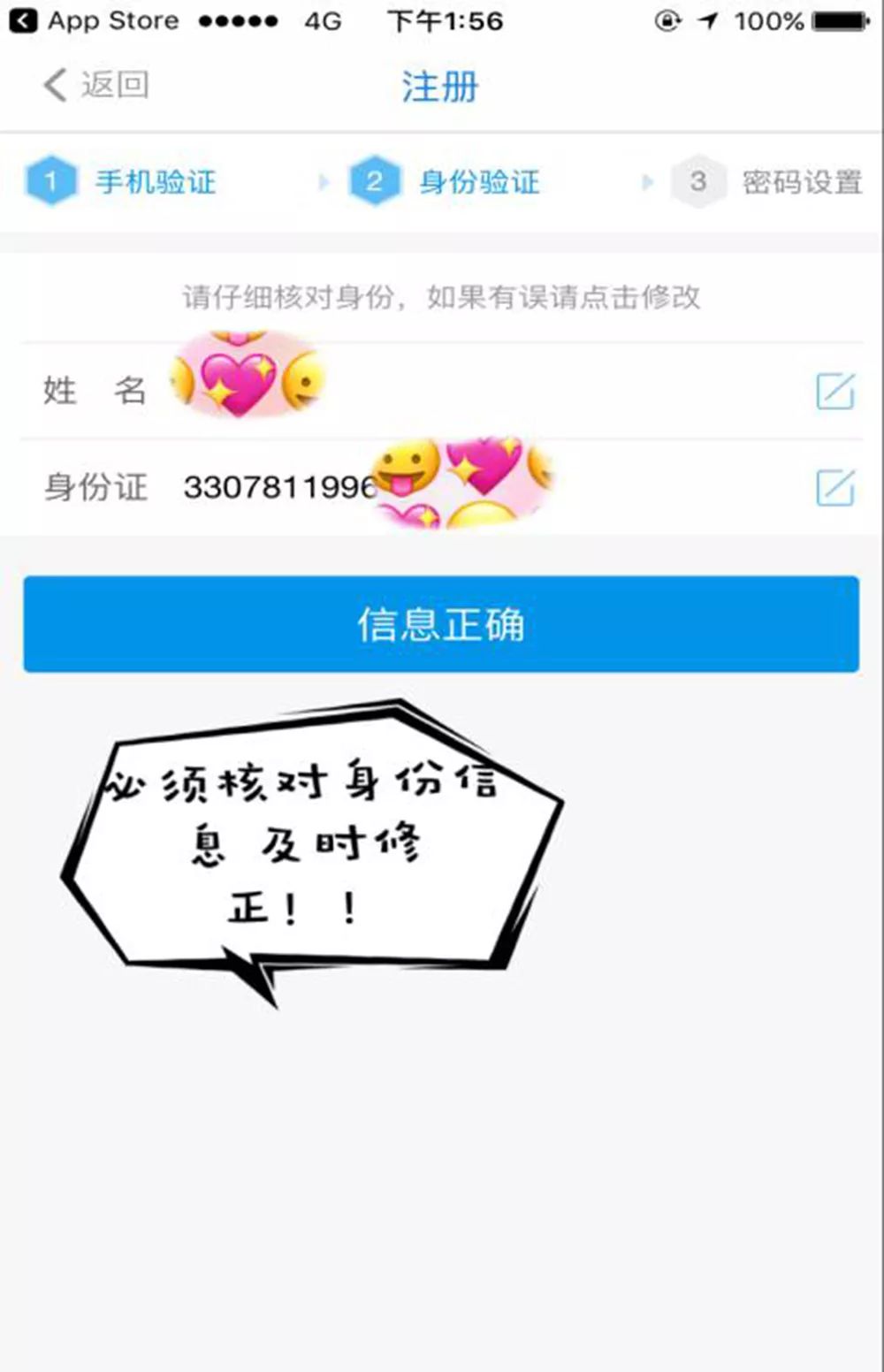 4、对系统自动识别并生产的身份信息进行核对,确保与原件信息一致,如有误可点击修改,完成后点击“信息正确”按钮。