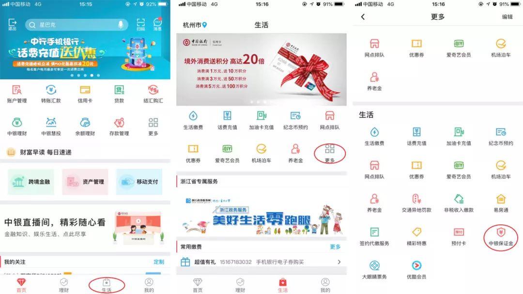 请先微信扫描下方二维码,下载手机银行APP。选择自助注册--根据提示,注册中国银行手机银行,完成注册后,登陆手机银行,选择“生活” --“更多”-- 进入“中银保证金”入口。
