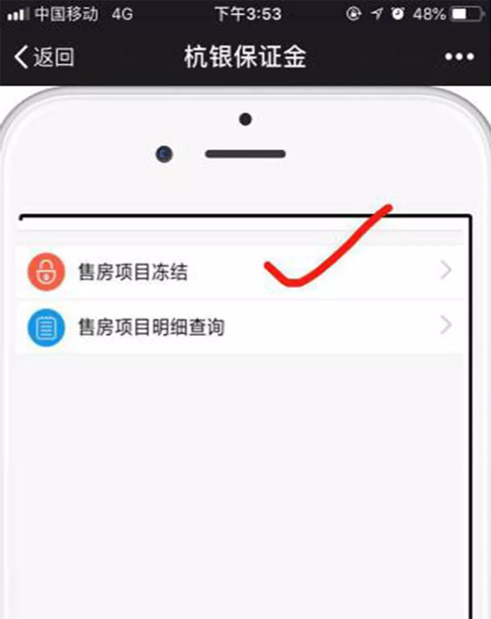3、点击“首页”中“生活缴费”选择“杭银保证金”——“售房项目冻结”中选中“本次摇号项目名称”确定,输入冻结金额,输入交易密码后点击确认,该交易可通过“售房项目明细查询”查看结果。