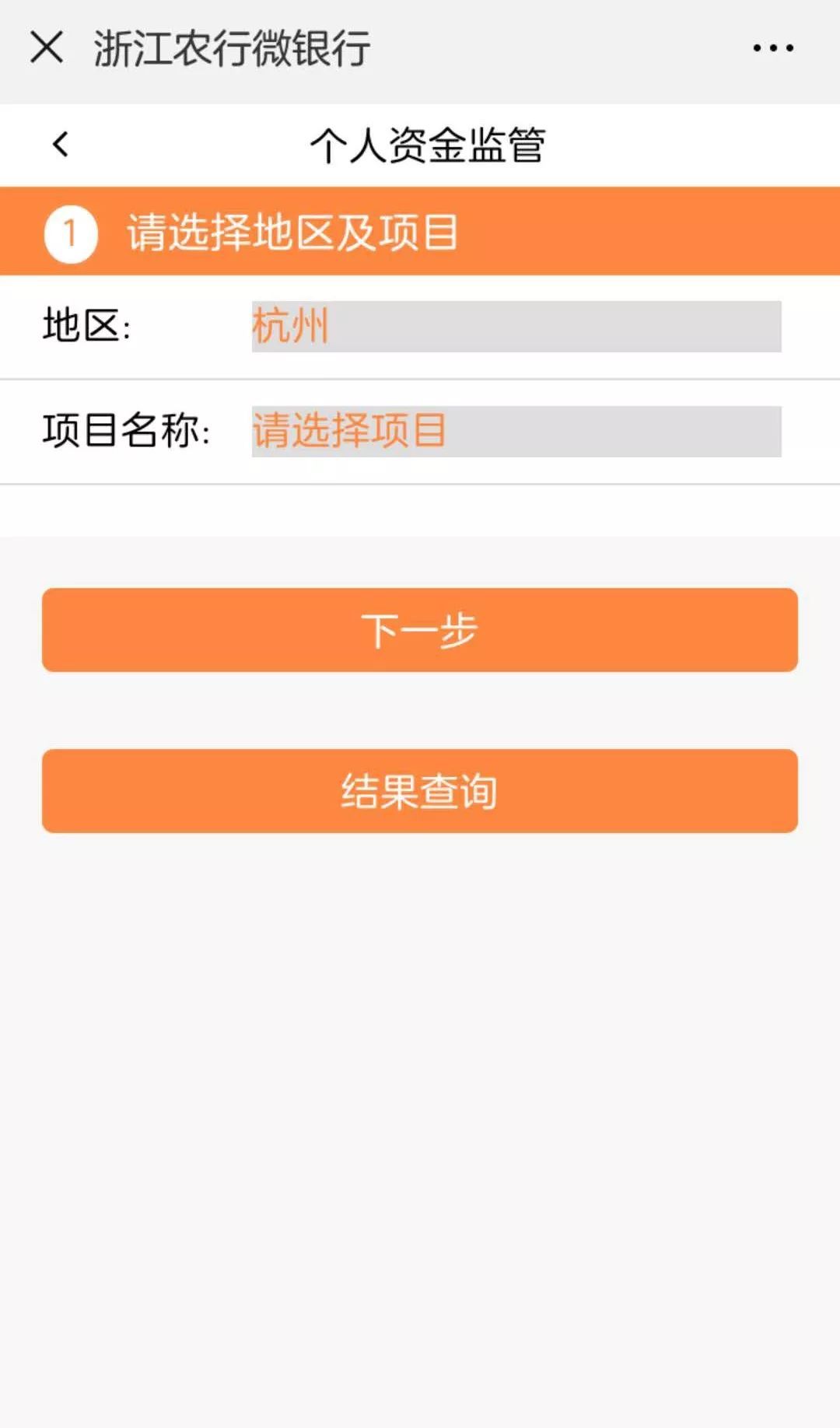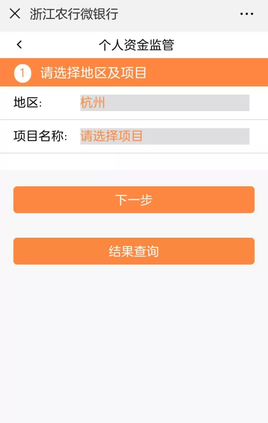 五、进行资金冻结,地区选择“杭州”,项目名称。选择“滨沁公寓”,点击“下一步”。