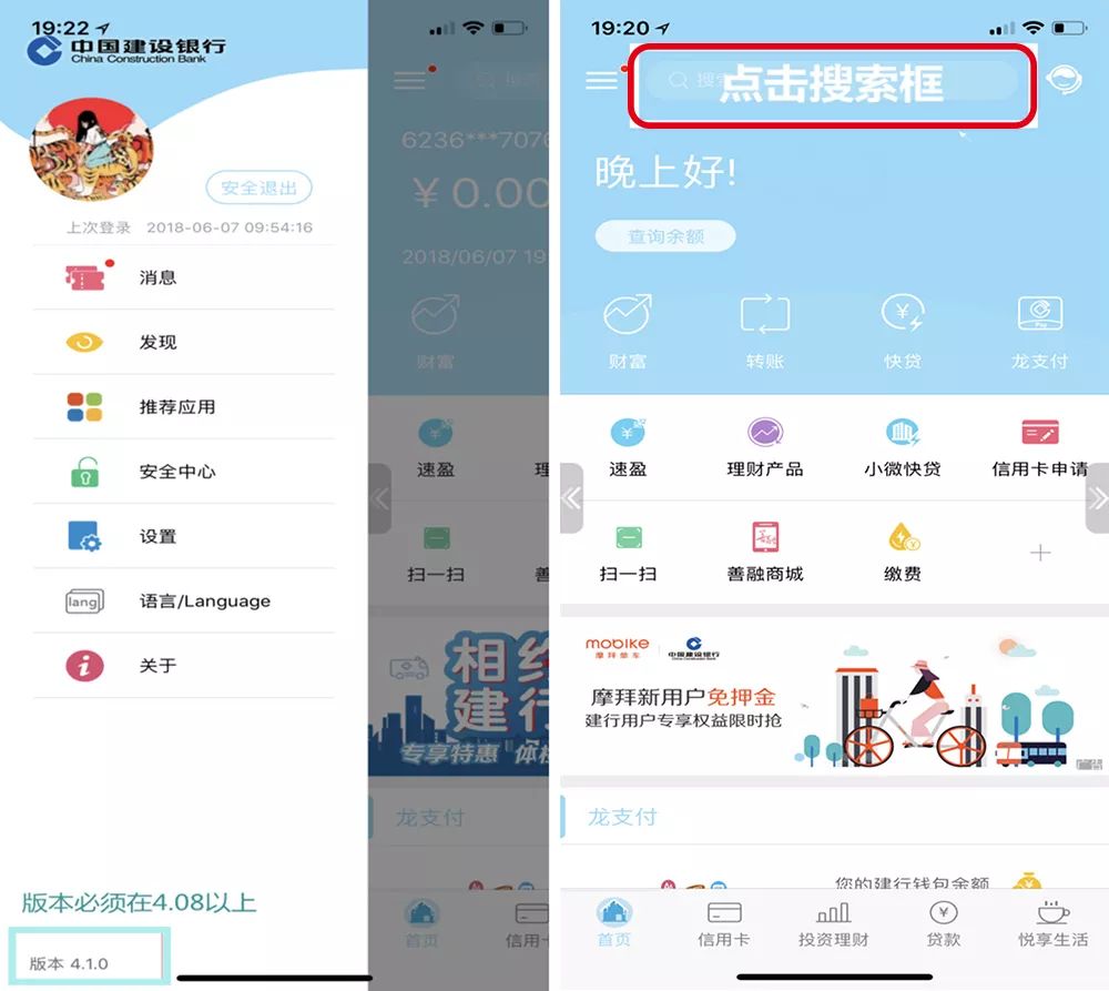 首先扫描二维码或者在手机的应用市场里搜索中国建设银行,然后点击下载安装。