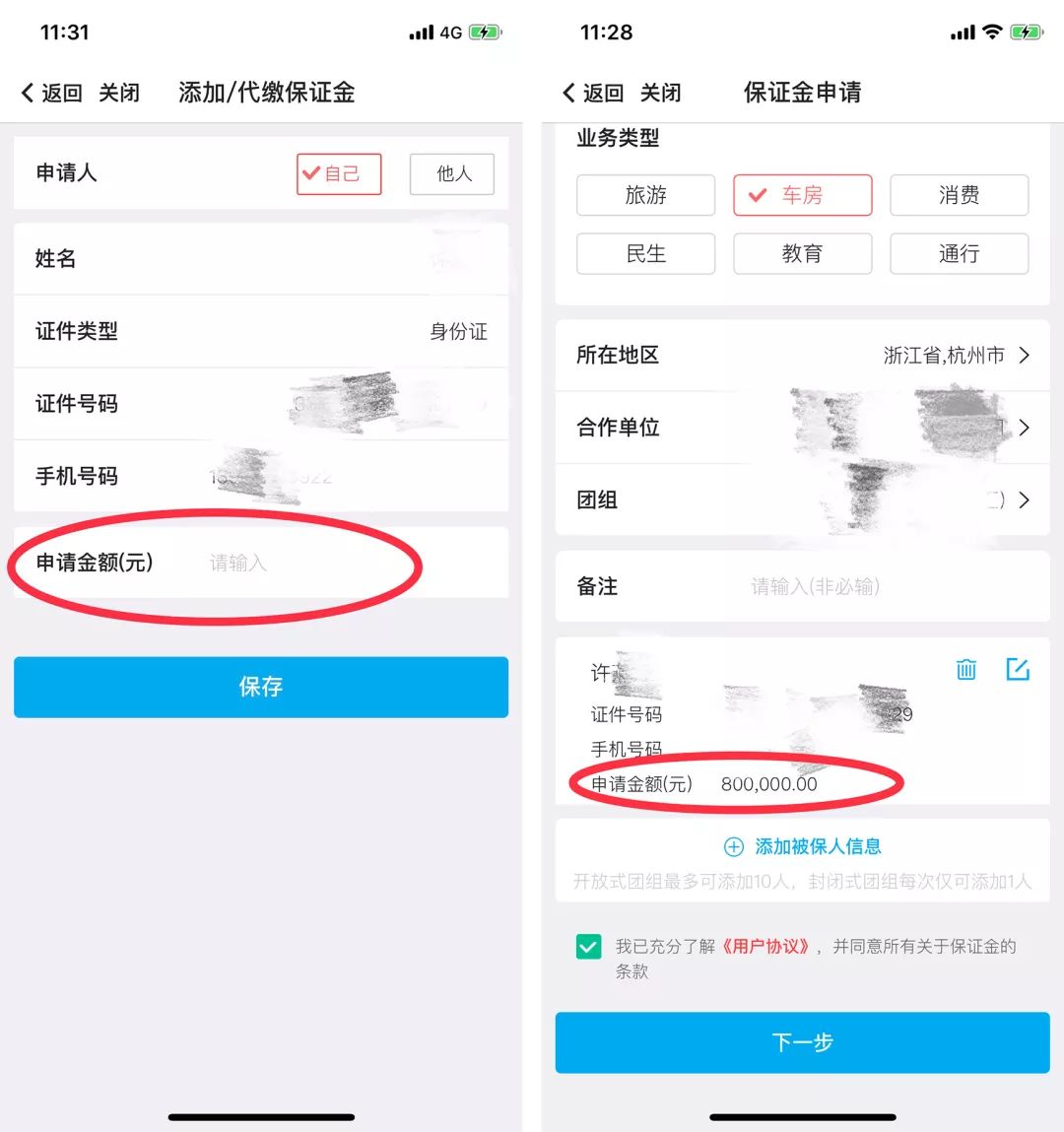 (3)根据开发商设置,有些楼盘需自己输入申请金额,有些楼盘已统一设定申请金额,无需自行输入。信息确认无误后,点击下一步。